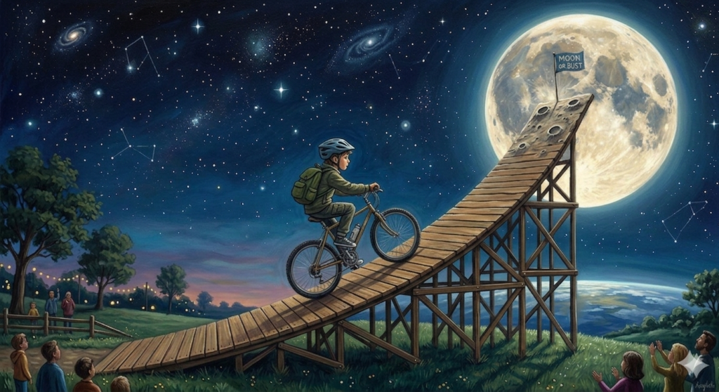 So, I’ll concede to Ehrman 10 feet of progress as he rides his bike up the ramp.